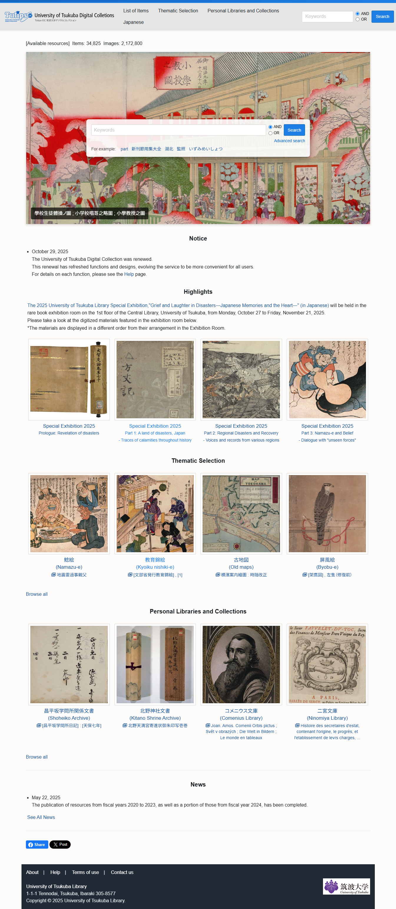 On Wednesday, October 29, 2025, the University of Tsukuba Digital Collections was renewed.