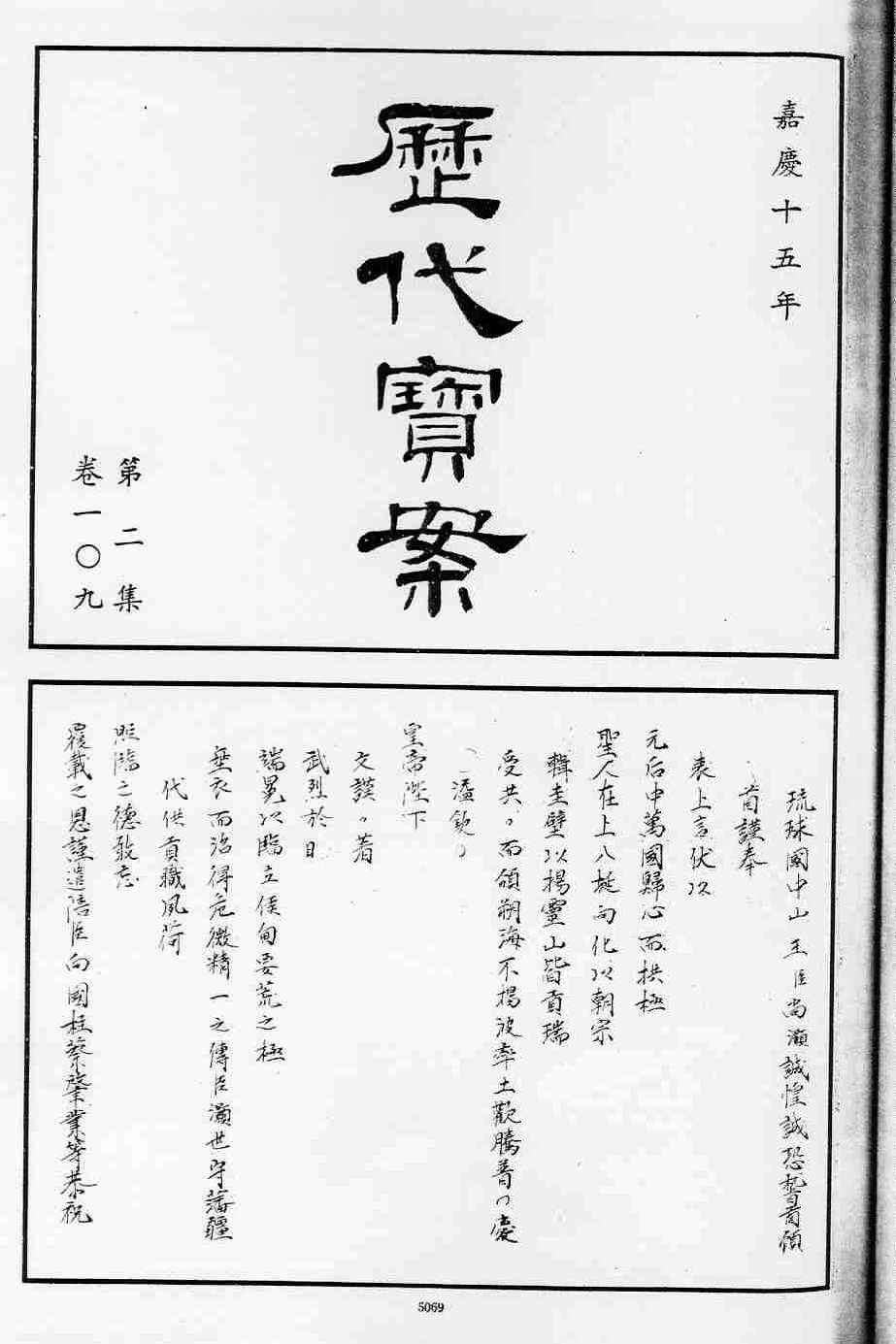 歴代宝案第二集 第九冊 巻一0九