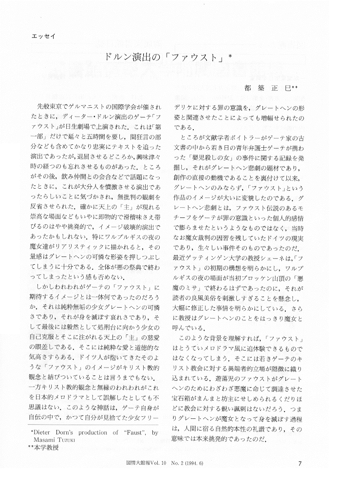 図書館情報大学附属図書館報 VOl.10 No.2 1994